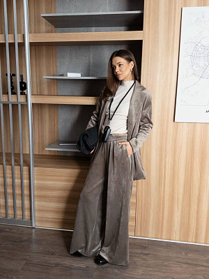 Этот комплект отлично подойдет для тех, кто ценит элегантность и стиль, но при этом не хочет жертвовать комфортом. Бретельные брюки и легкий жакет легко можно носить и на работу, и на прогулку, и на вечерний выход.