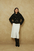 Куртка женская плащевая с утеплителем ISOSFT 200 гр. Прямого силуэта, длиной до середины бедра, на подкладке. На полочке карманы-листочка с втачными концами. Застежка двубортная с 4-мя пуговицами. Рукав длинный, двухшовный с патой, застегивающейся на пуговицу. Воротник отложной со стойкой. По боковым швам настрочные шлевки для съемного пояса с пряжкой.
