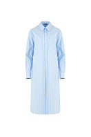 Платье женское прямого кроя, длиной ниже колен. Воротник рубашечный. По переду застежка на петли и пуговицы. Рукав длинный, одношовный, с планкой и притачной манжетой. Карманы в боковых швах и накладные по переду.