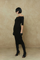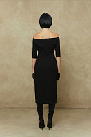Платье женское приталенного силуэта, с открытыми плечами, длиной ниже колен. Рукава втачные одношовные. Спинка с застежкой на тесьму- «молнию». Рукав длинный.