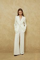 Жакет женский, однобортный, полуприлегающего силуэта, на подкладке. Застежка на одну петлю и пуговицу. На переде карманы в рамку с клапаном. Рукава втачные, в нижней части локтевого шва отлетная шлица с 4 пуговицами и непрорезными петлями. Воротник и лацкана отложные.