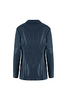 Жакет женский на подкладке из искусственной кожи, прилегающего силуэта. Перед с нагрудной вытачкой и прорезным карманом с клапаном и двумя обтачками. Спинка со средним швом и рельефам. Рукава втачные, двухшовные. Жакет застегивается на две прорезные петли и пуговицы.