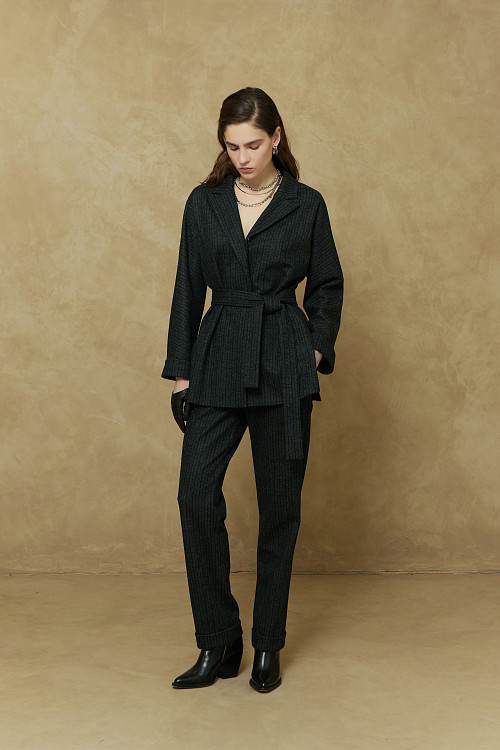 Жакеты легко комбинируются с пальто, плащами и даже пуховиками. Это делает их универсальным элементом гардероба.